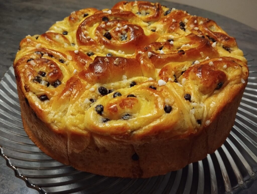 Cette recette de brioche fourrée à la crème pâtissière et pépites de chocolat est une valeur sûr. Certes un peu longue à préparer mais elle n’a rien à voir avec ce que l’on peut trouver de façon industrielle.